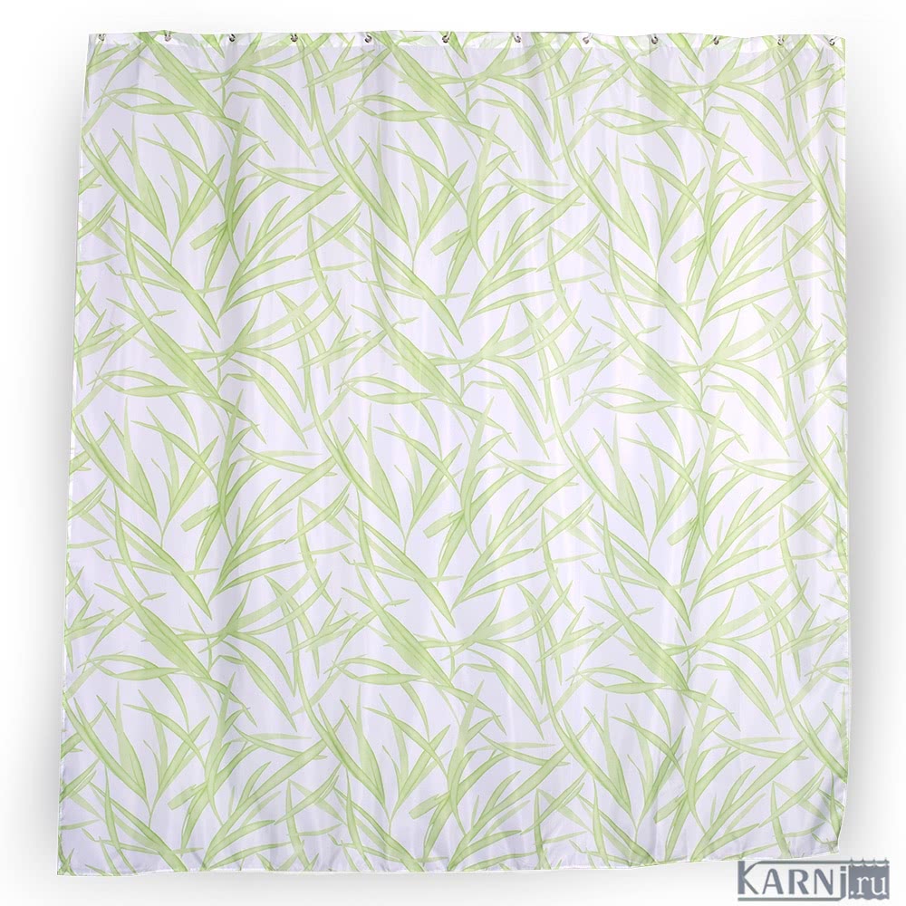 Занавеска из 100% полиэстера для ванны с 12 люверсами под кольца. Штора обработана специальной пропиткой, отталкивающей воду. Внизу по всей длине вшит шнур-утяжелитель.